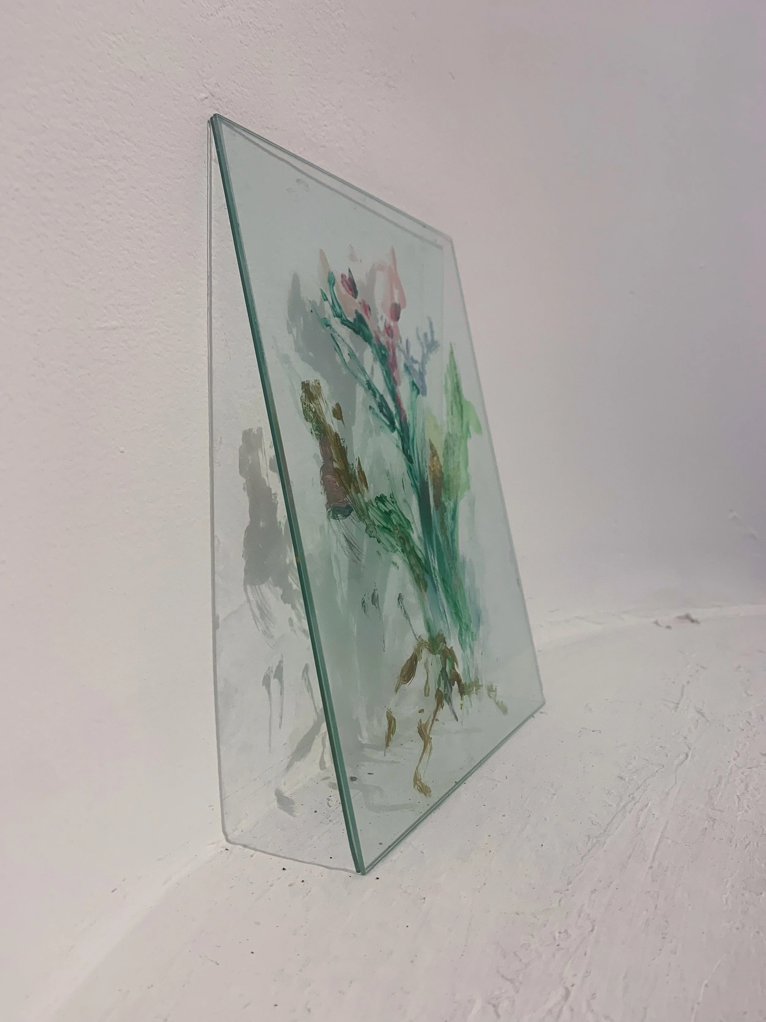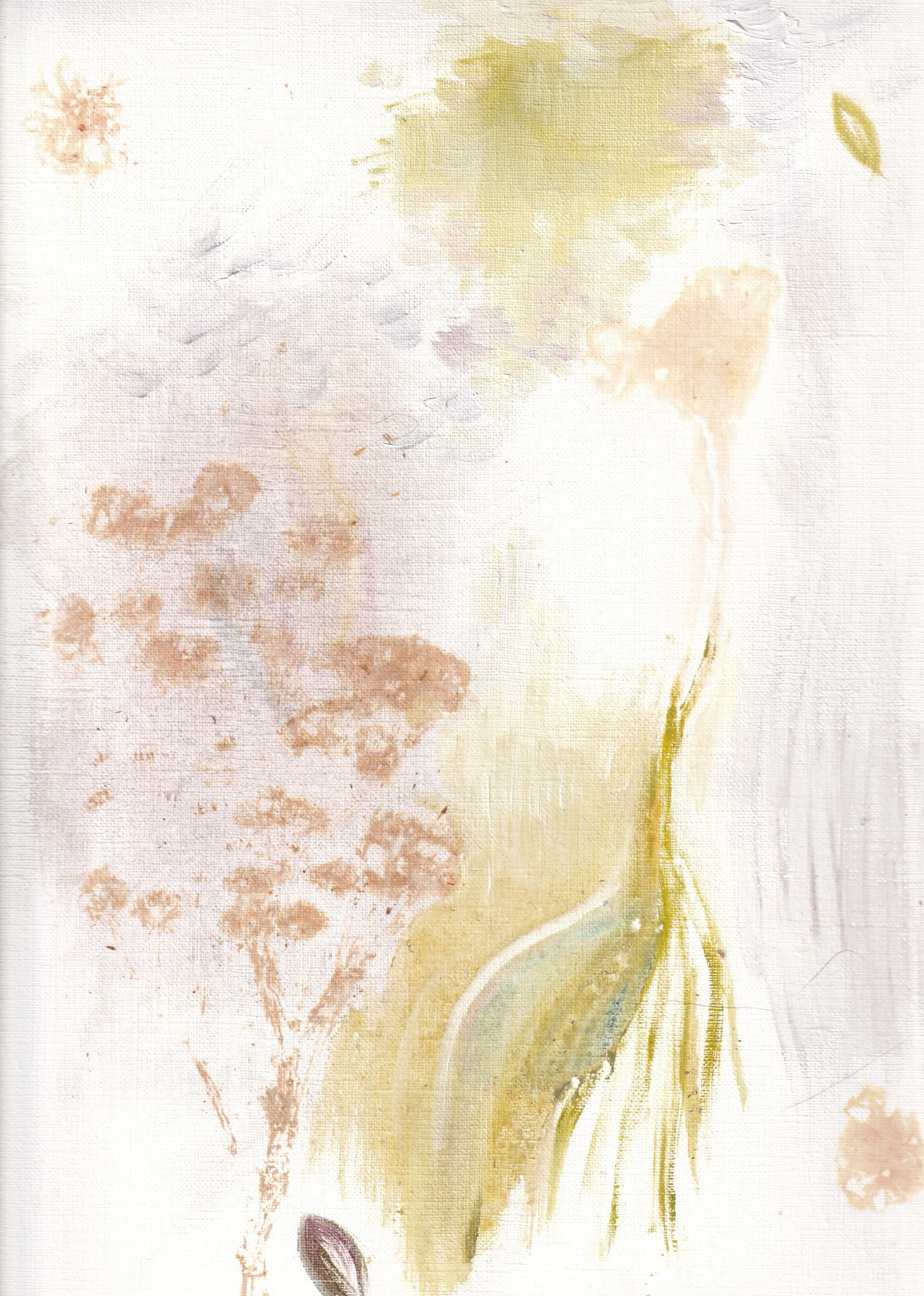 Bolted serie ochtendlicht, olie op doek en collage, 30X40cm en 15X15cm